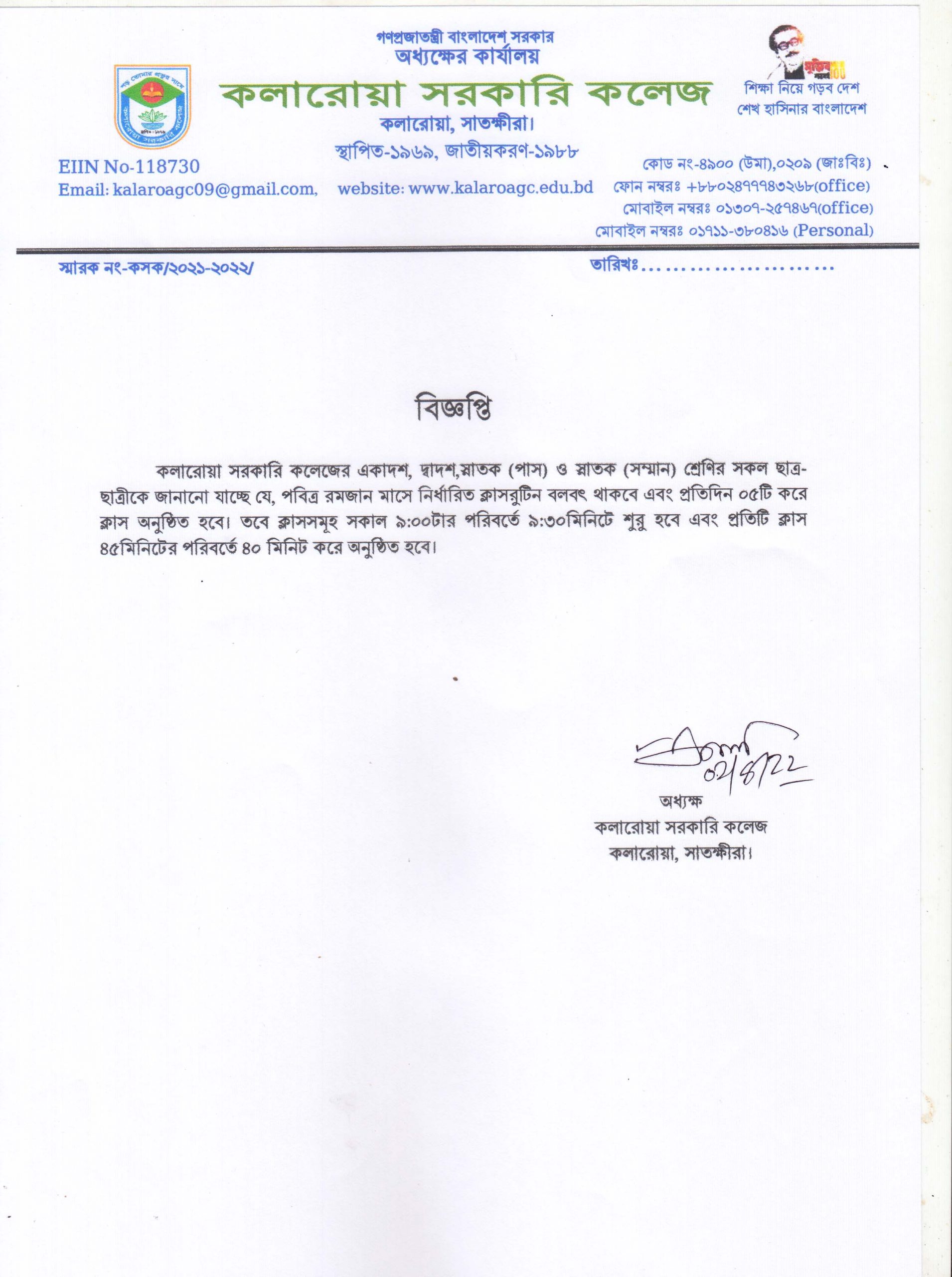 Post navigation ২০২২ সালের উচ্চ মাধ্যমিক পরীক্ষার্থীদের নিবন্ধনকার্ড গ্রহণ সংক্রান্ত বিজ্ঞপ্তি। ২০২০ সালের ডিগ্রী পাস ও সার্টিফিকেট কোর্স ৩য় বর্ষ পরীক্ষার ফরম পূরণের বিজ্ঞপ্তি।